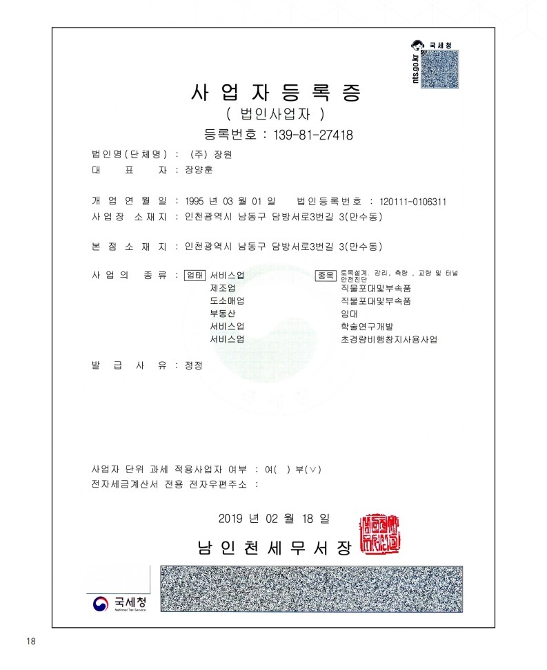 사업자 등록증 페이지 정보 작성자최고관리자 댓글 0건 조회 19회 작성일 25-09-01 16:23 본문 사업자 등록증 목록 이전글엔지니어링사업자 신고증 25.09.01 다음글감리전문회사 등록증 25.09.01
