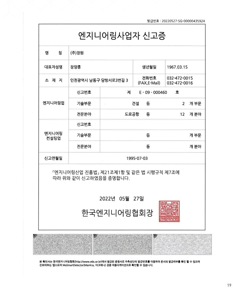 엔지니어링사업자 신고증 페이지 정보 작성자최고관리자 댓글 0건 조회 18회 작성일 25-09-01 16:24 본문 엔지니어링사업자 신고증 목록 이전글건설기술용역업 등록증 25.09.01 다음글사업자 등록증 25.09.01